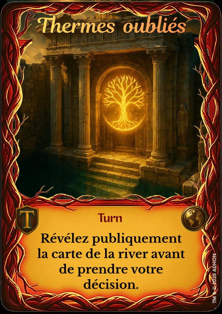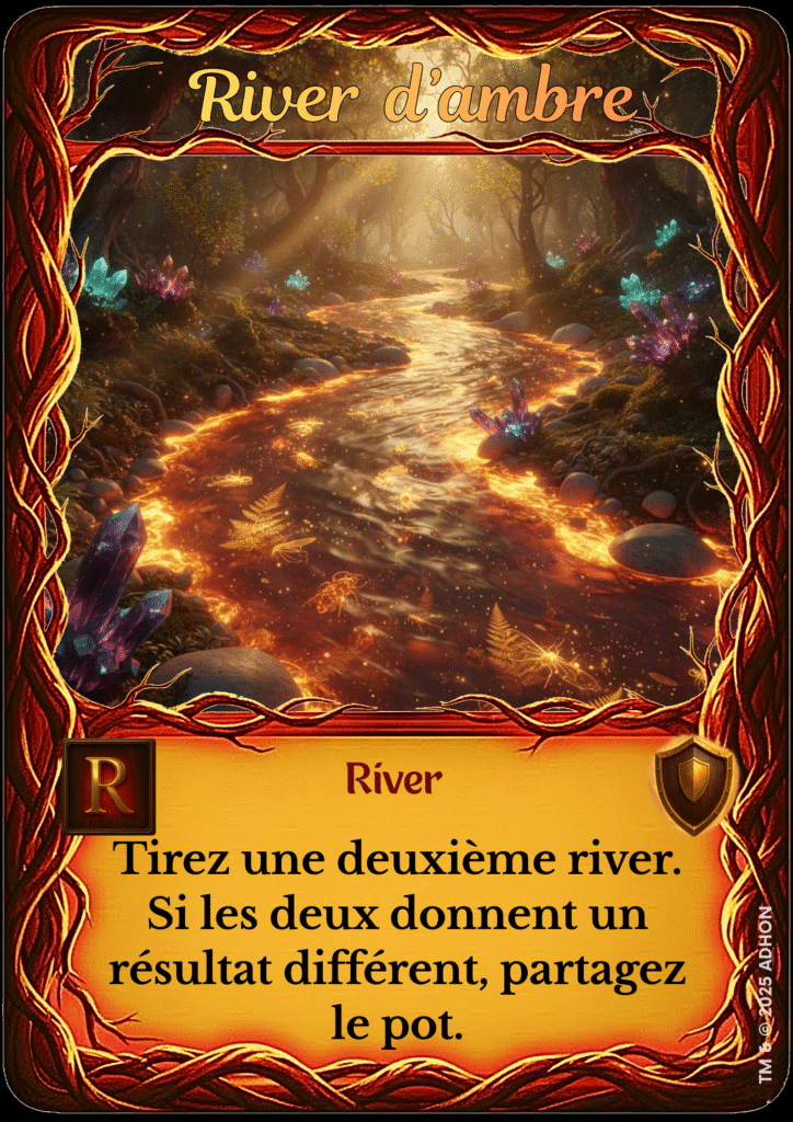Les cartes River agissent lorsque tout est sur la table. Elles permettent d’influencer la décision ultime, de dévoiler une vérité ou de choisir votre carte magique pour ce moment.